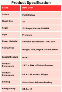 Note Gear Premium Notebook offers premium paper quality, structured layout, strong binding, and easy organization—making it a dependable choice for focused study and professiona work…